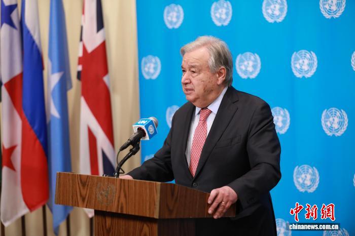 当地时间3月25日,联合国秘书长古特雷斯在纽约联合国总部举行的记者会上就中东局势对媒体发表讲话,呼吁美国和以色列结束对伊朗的战争,同时敦促伊朗停止攻击邻国。中新社记者 廖攀 摄